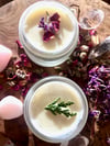 Tallow soaked in Lavender + Rose + Chamomile flowers, the lavender aromatics really come through nicely with this one.